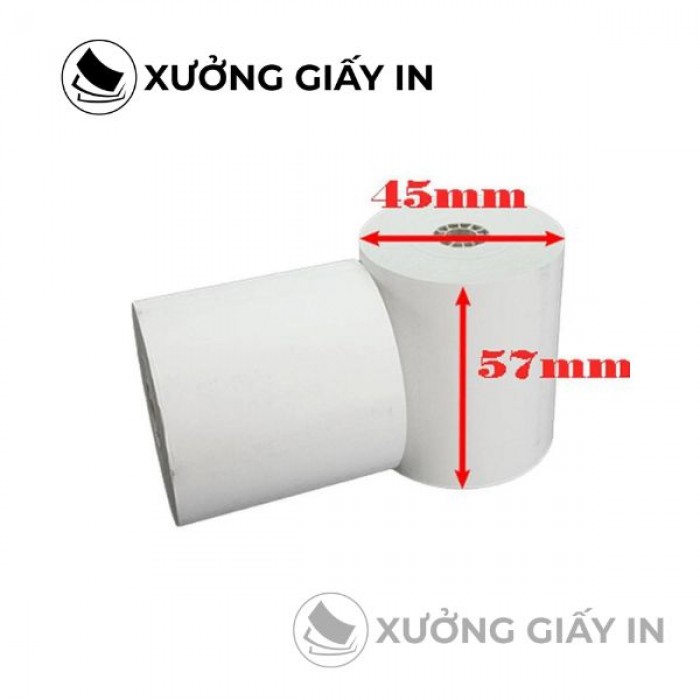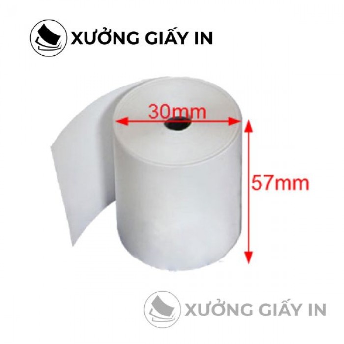 Phổ biến nhất là khổ K57 (rộng 57mm). Tùy vào khay giấy của máy mà bạn chọn đường kính cuộn 30mm hoặc 38mm để lắp vừa máy.