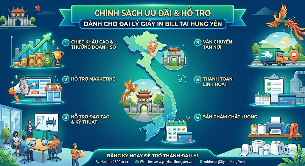 Xưởng sản xuất giấy in bill tại xuonggiayin hiện đang mở rộng hệ thống phân phối và tìm kiếm đại lý tại Hưng Yên với nhiều chính sách ưu đãi hấp dẫn. Bài viết dưới đây sẽ giúp bạn hiểu rõ hơn về cơ hội kinh doanh này cũng như lý do nên hợp tác cùng chúng tôi.