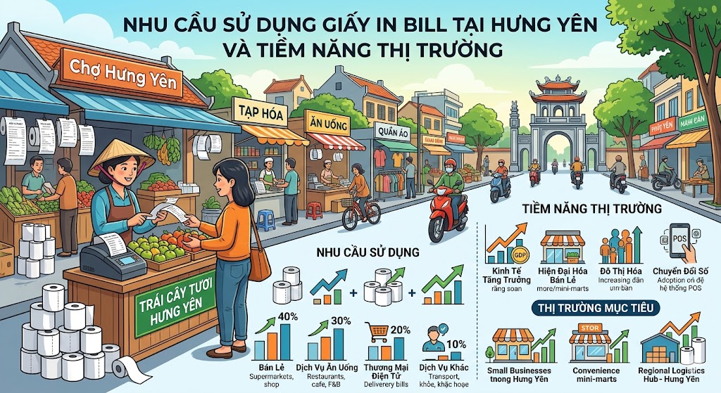 1. Nhu cầu sử dụng giấy in bill tại Hưng Yên và tiềm năng thị trường